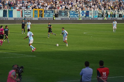 Un peccato per le grandi aspettative del pubblico che tuttavia ha mostrato di saper comprendere il divario comunque presente tra la compagine biancoazzurra e le squadre più blasonate della serie. Infatti, nonostante il duro passivo subito ha applaudito la squadra che timidamente cercava di scusarsi al termine della partita, rivolti verso la nord.