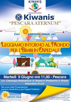 L’ADRICESTA Onlus ed il KIWANIS Club Pescara Aternum, con il Progetto “Leggiamo Intorno al Mondo” per i Bimbi in Ospedale, desiderano portare nell’ambiente nel quale si viene a trovare il bambino ricoverato, condizioni di accettazione e contenimento affettivo e ludico per attenuare, in parte, le alterazioni delle relazioni personali, la mancanza delle abitudini e i ritmi quotidiani, la criticità di una esperienza che può risultare traumatica e portare, soprattutto in casi di lungodegenza, la perdita di autostima e il decadimento della percezione del proprio sè.