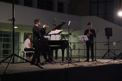 “Libertango e Oblivion” i due famosi brani dell’autore argentino Piazzolla, hanno chiuso la serata ed il trio ha salutato i presenti invitando a valorizzare la musica, l’arte quale prezioso patrimonio da tramandare ai giovani. Nell’open concert si sono esibiti tre allievi del Liceo musicale di Pescara: Fulvio Ferrara al flauto, Nevio Ciancaglini al clarinetto e Andrea Di Stefano al pianoforte, supportato dalla sua insegnante Cristina Bonaccini.