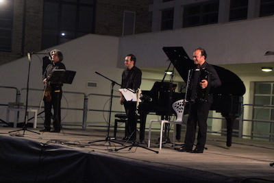 Il trio di musicisti è stato molto apprezzato per le coinvolgenti interpretazioni musicali di colonne sonore famose dei film del grande regista riminese F. Fellini, “Amarcord e La dolce vita” e del film “Nuovo cinema paradiso” di G. Tornatore. Il gruppo è composto da Gianluca Campi alla fisarmonica, Andrea Cardinale al violino ed Alessandro Magnasco al pianoforte.