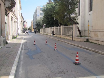 Sono stati individuati così 22 posteggi ciascuno di dimensioni 4,00 x 2,00 mq, posti in una posizione che assicura un transito pedonale in sicurezza, senza condizionamenti alla mobilità stradale della zona.