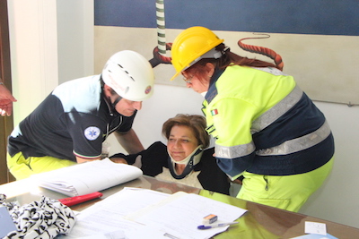 Il rischio simulato è stato l’incendio a seguito di terremoto e si sono attivate tutte le procedure del caso, a cominciare dalla segnalazione alla Prefettura di Pescara, il raduno dei presenti all’aperto, su piazzale Michelucci (=luogo sicuro), con il successivo arrivo delle colonne mobili della Protezione Civile e l’intervento anche di sanitari per il recupero di possibili infortunati. Una volta accertata la sicurezza della struttura, dopo aver messo in salvo le persone presenti, il responsabile della Protezione Civile, Livio D’Orazio, di concerto con il Direttore dell’Archivio di Stato di Pescara, ha impartito ai volontari le disposizioni per la messa in sicurezza del patrimonio documentario. Gli stessi hanno dunque provveduto a prelevare il materiale disponendolo in cassette e sistemandolo nei mezzi per condurli al sicuro nel capannone ad uso della Protezione Civile sulla Tiburtina. Ultimata l’esercitazione, l’intero materiale è stato ricollocato al proprio posto sugli scaffali dell’Archivio di Stato e l’assessore Paola Marchegiani si è complimentata per la professionalità dimostrata dai volontari.