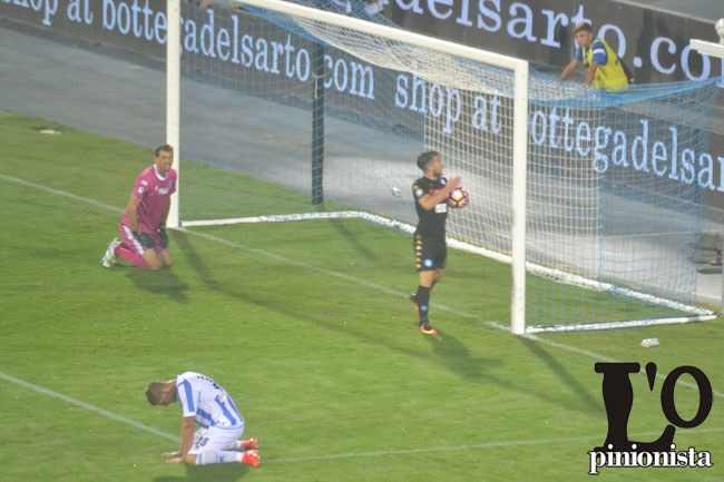 Tiro cross dalla sinistra di Insigne che attraversa tutto lo specchio della porta del Pescara che si rifugia in corner. Doppio cambio per Sarri che inserisce Mertens per Insigne e Milik per Gabbiadini. Al 15′ il Napoli accorcia le distanze con Mertens che dal limite ha tempo di prendere la mira e di battere Bizzarri con un preciso diagonale rasoterra. Terrificante l’1-2 dopo appena due minuti con l’imbeccata a centro area di Callejon ancora per Mertens che anticipa tutti su liscio di Coda in area piccola.