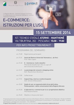PESCARA – Oggi,15 settembre alle ore 15.00 presso l’aula magna dell’Istituto Tecnico Aterno Manthonè, si terrà il Seminario E- Commerce: istruzioni per l’uso.