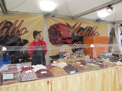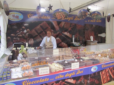 ai partecipanti offriremo il miglior cioccolato non industriale, ossia prodotto esclusivamente nei laboratori artigianali: abbiamo il cioccolato alle essenze più stravaganti, ossia allo zenzero, alla cannella, al peperoncino, o al finocchietto selvatico e ai petali di rosa. E abbiamo nomi importanti della cioccolateria come Gelato Buonissimo di Conegliano, Dolcevita di Jesi, in provincia di Ancona, la Boutique del Dolce di Gorizia; la Melillo Dolciaria da Termoli, pasticceri da tre generazioni; da Codognè, in provincia di Treviso, abbiamo la Cioccolateria Moro, con i cremini venduti al taglio e le lastre di cioccolato speziate, e ancora da Merate c’è la Dolci Express che nella nuova produzione annovera le originali scarpette di cristallo; è tornata l’Azienda di Maria di Ripolimosani, in provincia di Campobasso, con la raffinata pralineria; Sil di San Donà di Piave, in provincia di Verona, che propone il cioccolato fondente senza zucchero; dal Belgio abbiamo la presenza di un ospite d’eccezione, Roland Storms vincitore di gare internazionali e famoso per la produzione di cioccolato belga; e ancora ci sono le classiche specialità Siciliane, ossia la pasta di mandorle e cannoli ripieni di ricotta fresca con lacrime di cioccolato, di Sergio Caruana.