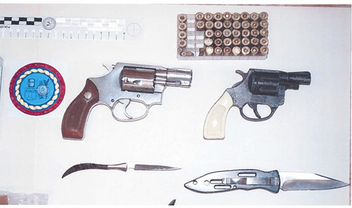 Nel corso dell’operazione, è stato arrestato E. C., classe 1979, residente a Pescara, pregiudicato, nella cui abitazione è stato sequestrato il seguente materiale, in parte nascosto in cucina e in parte in camera da letto: 35 grammi di eroina suddivisi in dosi; 9 grammi di cocaina in un unico involucro; 2,27 chili di marijuana; due bilancini elettronici di precisione e materiale per il confezionamento della droga; una pistola revolver Smith & Wesson calibro 38, rubata a Pescara nel 2010; una pistola revolver “scacciacani” modificata per esplodere cartucce calibro 22; 37 cartucce calibro 38; 4 cartucce calibro 22; un coltello a serramanico della lunghezza di 20 cm; uno stiletto della lunghezza di 15 cm.