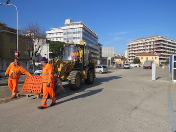 “Negli ultimi quattro anni e mezzo – ha ricordato il sindaco Albore Mascia – una delle maggiori preoccupazioni della nostra amministrazione comunale è stata quella di restituire decoro e dignità alle aree di risulta. Quando ci siamo insediati, nel 2009, ci siamo trovati dinanzi un vero disastro: l’unica parte realmente utilizzabile per la sosta era una piccola fetta sud, che partiva dall’ingresso su piazza della Repubblica e si estendeva per alcune centinaia di metri, l’unica parte che era stata riqualificata durante l’ultimo scorcio della seconda consiliatura Pace. Poi il nulla: tutta la parte rimanente è rimasta per sei anni, per l’indifferenza dell’allora maggioranza di centro-sinistra, un enorme pantano di fango e polvere, dove non era possibile lasciare l’auto in sosta, o semplicemente transitare, senza inzaccherarsi scarpe e abiti, una situazione che diventava insostenibile nei giorni di pioggia. Lo sconcio più totale era poi evidente nella parte nord della superficie, compresa tra il terminal bus e via Michelangelo, dove c’era anche un manufatto dove sino a qualche anno fa veniva custodita la locomotiva storica, e che con gli anni si era trasformato in un rifugio diroccato per disperati e utenti in forte condizione di disagio sociale, con le relative e giuste lamentele degli automobilisti, molte anche donne, per i problemi di sicurezza e il timore di essere aggrediti di sera, quando andavano a ritirare il proprio veicolo. Pian piano, in quattro anni e mezzo, ci siamo rimboccati le maniche e, ogni volta prevedendo una spesa ad hoc sui capitoli d’investimento, abbiamo iniziato il lungo cammino della riqualificazione immediata, concreta, tangibile, senza per questo abbandonare il progetto di riorganizzazione complessiva di quelle aree, progetto legato a doppio filo con la costruzione del Teatro dell’Adriatico. Comunque, nell’immediato ci siamo preoccupati di offrire sin da subito un servizio efficiente alla città: abbiamo cominciato ripristinando la fruibilità dei 400 posti auto realizzati nell’area del Terminal bus; poi ci siamo preoccupati del versante nord, cominciando con la demolizione del manufatto-rifugio per disperati, creando centinaia di posti auto, garantendo un’illuminazione adeguata per la sicurezza di chi accede al parcheggio. Poi, appena la scorsa estate, abbiamo riqualificato l’ultimo lembo sud del parcheggio, quello che costeggia via Teramo-via Pisa, una superficie in cui, grazie alla realizzazione dei lavori, siamo riusciti a raddoppiare i posti auto disponibili e dove peraltro abbiamo anche concluso la pista ciclabile che corre sul lato mare delle aree di risulta e che era rimasta a metà. E in tutti i casi siamo riusciti a cancellare, con un colpo di spugna, proteste e lamentele della cittadinanza: oggi quegli spazi di sosta sono perfettamente accessibili, qualunque siano le condizioni meteorologiche sulla città, e sono sicure, perché illuminate, con percorsi dedicati per i pedoni, e anche spazi riservati ai dive
