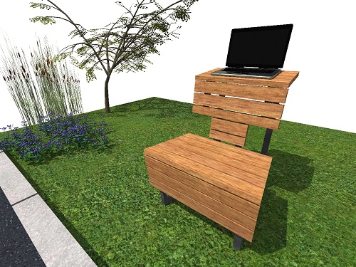 Altra novità riguarderà il Parco della Caserma Di Cocco, dove verrà realizzata una piccola “sala studio” all’aperto. Si tratta di un progetto sperimentale, che prevede la posa in opera di speciali panchine (in foto) che possono essere utilizzate sia come semplici sedute che come basi di appoggio per portatili, appunti e libri. A completare il quadro ci sarà presto anche una rete wifi libera per i frequentatori.