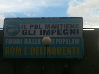 In ordine di nefandezza viene prima il manifesto del PdL che vuole ricordare alla Città il proprio passato in una guerra senza confini accomunando ai delinquenti tutti i rom.