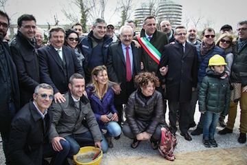 Prima della posa hanno ripercorso la storia dell’opera l’assessore ai Lavori Pubblici Enzo Del Vecchio, il sindaco Marco Alessandrini, il presidente della Regione Luciano D’Alfonso, sindaco all’epoca della nascita del progetto.