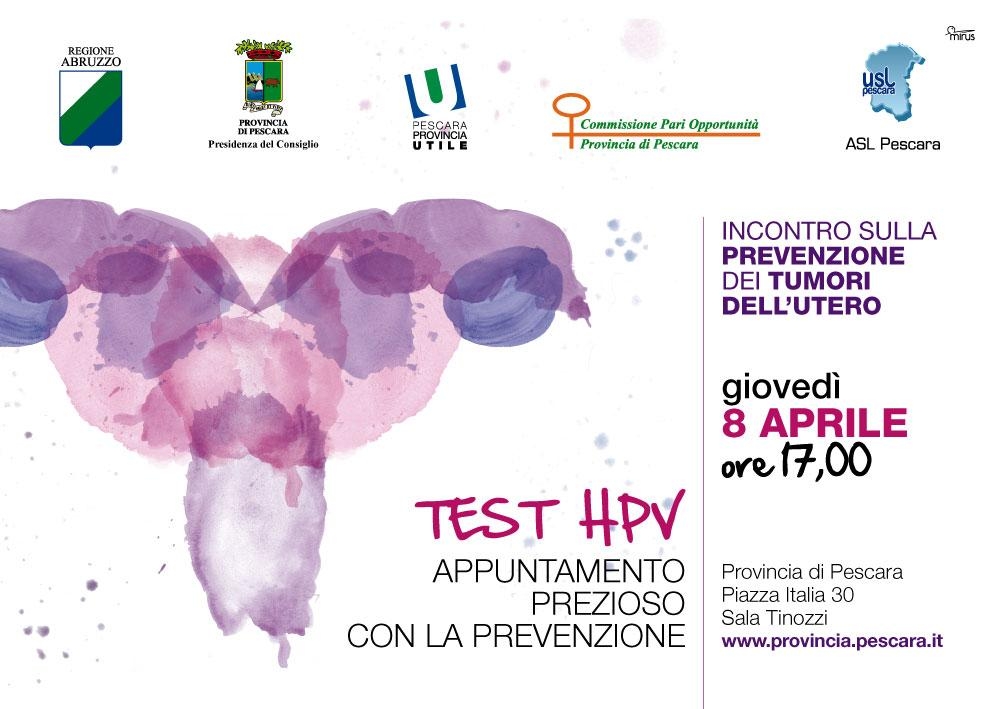 PESCARA – La Commissione Pari Opportunità della Provincia e la Presidenza del Consiglio hanno organizzato un incontro pubblico, giovedì 8 aprile, per le donne di Pescara che avranno la possibilità di conoscere nei dettagli i vantaggi del test HPV Dna. Obiettivo dell’incontro, che si terrà nella sala Tinozzi a partire dalle ore 17, è offrire un’occasione di approfondimento a proposito di un tema, quello della prevenzione dei tumori all’utero, che interessa 360 mila donne abruzzesi, alle quali è rivolto il programma di screening messo a punto dal prof. Claudio Angeloni e attuato dalla regione Abruzzo.
