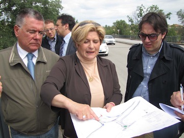 PESCARA – Gli assessori ai Lavori pubblici Isabella Del Trecco e alla Mobilità Berardino Fiorilli nel corso di una conferenza stampa convocata ieri hanno presentato il cantiere relativo al completamento del raddoppio del Ponte di Villa Fabio e soprattutto i provvedimenti viari previsti . Presenti anche il consigliere regionale Lorenzo Sospiri, il Presidente della Commissione Lavori pubblici Armando Foschi, e il consigliere comunale Vincenzo D’Incecco.In realtà il maxi-cantiere è stato aperto lo scorso aprile a ridosso del ponte , ma da oggi,9 maggio, entrerà nel vivo con la chiusura al traffico, per almeno dieci giorni, della corsia lato monte del ponte, e l’istituzione del doppio senso di marcia sulla corsia lato mare, provvedimento che sicuramente determinerà qualche disagio e un incremento del volume di traffico, che si cercherà di limitare al minimo, contando sulla collaborazione della cittadinanza.Occorreranno diciotto mesi di lavori per consegnare alla città il completamento del raddoppio del Ponte di Villa Fabio con la rotatoria di connessione alla strada-pendolo, che sorgerà in via Aterno, e la realizzazione delle quattro nuove rampe di collegamento all’asse attrezzato. L’obiettivo è quello di dotare la città di un nuovo svincolo e di una nuova infrastruttura strategica tesa a ottimizzare la viabilità sul nostro territorio, un altro tassello a completamento della strada-pendolo, incrementando le potenzialità attrattive della parte ovest della città.