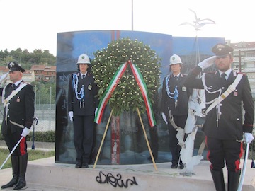 “La giornata del 16 settembre – ha sottolineato il sindaco Albore Mascia – sarà sempre una pagina dolorosa per la nostra città e per la nostra storia, al pari di altri tragici episodi che hanno visto cadere, sotto i colpi della delinquenza, del terrorismo, o della semplice malavita, altri piccoli grandi eroi impegnati a tutelare la nostra sicurezza. In un’epoca in cui l’individualismo più sfrenato permea ogni cosa del vivere sociale, così come la rivendicazione dei diritti del singolo, ritengo che il ricordo di chi ha ‘semplicemente’ dato se stesso, sacrificando la propria vita, per compiere, completamente, fino in fondo, il proprio dovere, al fine di garantire la sicurezza di tutti, debba rappresentare un monito costante, ma soprattutto debba essere un esempio per le giovani generazioni, troppo spesso indotte a rifarsi e ispirarsi a falsi miti e a modelli sbagliati. Ricordo come nel ’96 tutta la città ha vissuto con angoscia l’evento, comunque insolito per una città grande, ma ancora a misura d’uomo. Ricordo distintamente le prime notizie sulla sparatoria, le voci su un esponente dell’Arma che era caduto sotto i colpi della malavita locale, e ricordo l’incredulità, il dolore, la costernazione e anche la rabbia, che poi si è tramutata in un abbraccio per tentare di proteggere una famiglia dilaniata e quei bambini che, ancora in tenerissima età, erano stati privati di uno degli affetti più grandi, quello del papà”.