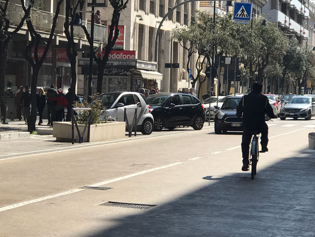 Gli effetti del ripristino del doppio senso intanto oggi li abbiamo già visti: alle auto in transito si sono aggiunti le decine di mezzi parcheggiati in modo selvaggio lungo tutto corso Vittorio Emanuele, tra le fontane, tra le panchine, su entrambi i lati della strada, tra lo sdegno dei pedoni e l’assenza totale dell’amministrazione comunale Alessandrini che oggi ci ha reso perfettamente chiara quale sia la sua idea di città.