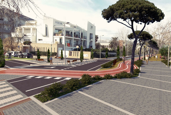 La realizzazione del percorso pedonaletratto via Papa Giovanni XXIII in uno spazio largo oltre 7 metri in cui sono collocate siepi e comode (nonché robuste) sedute con vista mare; la pista ciclabile (con pavimentazione drenante color rosso mattone come nel tratto già realizzato) è attrezzata con ampi spazi per il parcheggio delle bici (posizionate tra le aiuole e siepi adiacenti la ciclovia, in modo da non intralciare ciclisti e pedoni); i parcheggi per automezzi e motocicli, adiacenti la carreggiata stradale (in cui la velocità massima consentita è di 30 km/h), sono pavimentati con calcestruzzo drenante e delimitati con canali di scorrimento per acque piovane. L’attraversamento della pista ciclabile lato monte, in corrispondenza dell’incrocio con via De Titta, e la sua riconnessione con il tracciato ciclabile già realizzato dalla Provincia di Pescara sul marciapiede di via De Nardis e parte della ciclovia adriatica regionale.