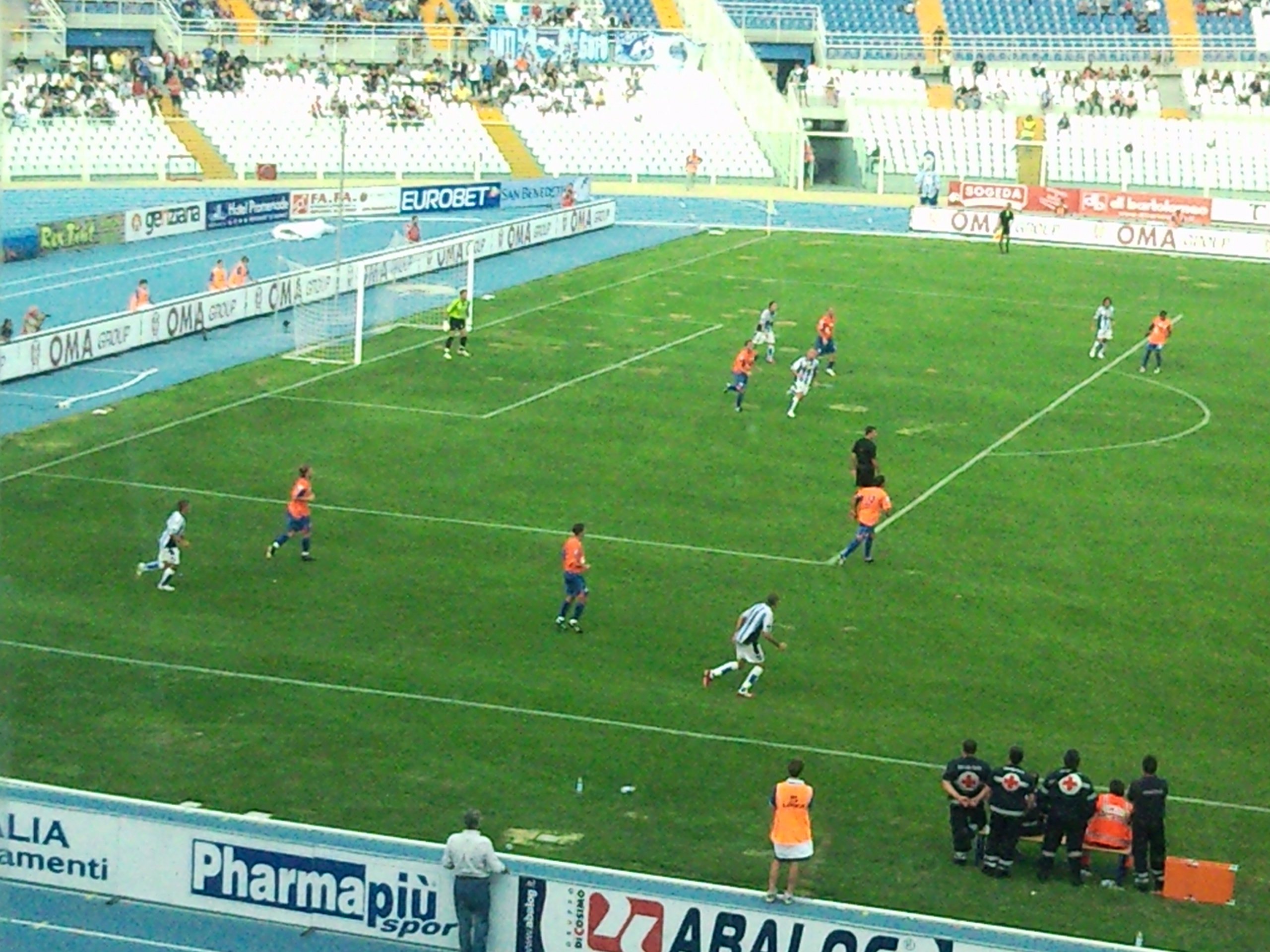 PESCARA – Allo stadio Adriatico si gioca davanti ad un pubblico di circa ottomila spettatori, giornata calda e cielo leggermente velato, campo in condizioni ancora precarie. Le assenze pesanti di Tognozzi, Gessa e Zizzari infortunati e Mengoni squalificato inducono Cuccureddu a cambiare il solito modulo 4-4-2 schierando un 4-3-3 con Pinna tra i pali, in difesa da destra Medda, Romito, Olivi e Petterini, in mediana Dettori vertice basso, Coletti e Zappacosta al lati, tridente con Ganci e Bonanni sulle fasce, Sansovini punta centrale.