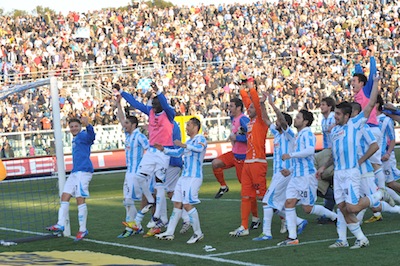 Standing ovation per Immobile ed Insigne rilevati da Maniero e Soddimo e delfino che si spaventa da solo allontanando più volta alla meno peggio i pericolosi palloni buttati in area dagli ospiti. Il brivido finale è di quelli da far restare con il fiato sospeso: al 46′ uno “sciagurato” retropassaggio di Capuano trova sulla traiettoria Troianiello che si ritrova a tu per tu con Anania ma dopo averlo dribblato si allarga troppo e calcia incredibilmente a lato. I ragazzi di Pea si mangiano le mani e i Pescara può tirare un sospiro di sollievo guardando con ottimismo la prossima sfida casalinga contro lo Juve Stabia che li potrebbe portare a ridosso della capolista Torino, oggi vincente 3-0 a Grossetto.