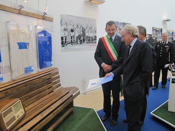 Il Direttore Valentini ha quindi consegnato al sindaco Albore Mascia la Targa ‘Pescara – Città Azzurra del Calcio’, oltre allo scudetto e alla Tessera Azzurra.Quindi il sindaco Albore Mascia, con il Direttore Valentini e i Presidenti Pagano e Testa ha tagliato il nastro per inaugurare il Museo del Calcio, allestito nella Sala degli Alambicchi dell’Aurum, Museo che resterà aperto tutti i giorni dalle 9 alle 20.30 da oggi sino al prossimo 16 ottobre.