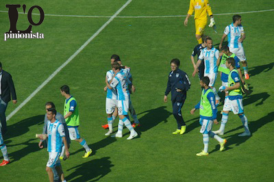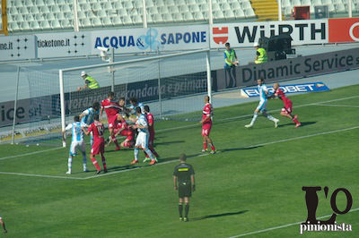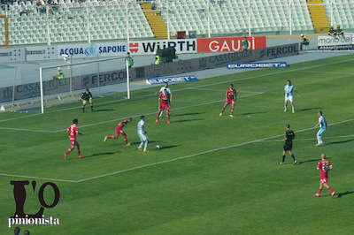 IL DELFINO ROMPE IL DIGIUNO – Vantaggio del Pescara al 25′ Sforzini: in occasione di una punizione dalla sinistra di Ragusa si accende una mischia e dopo un batti e ribatti l’ultimo tocco della punta neo entrata si infila in fondo al sacco. Sterile la reazione del Siena, praticamente inesistente nella ripresa e Beretta che si gioca la carta Cappelluzzo per un difensore, Belmonte, al fine di dare più spinta all’attacco. Il Pescara sfiora il raddoppio su un lancio lungo di Balzano con un colpo di testa di Sforzini che dopo aver scavalcato Lamanna si stampa sul palo. Unici sussulti della squadra toscana al 38′ quando Pulzetti in mezzo ad diversi avversari prova la conclusione che termina sopra la traversa ed al 47′ quando di cross di Angelo, Pelizzoli in uscita fa correre qualche brivido alla difesa biancazzurra.