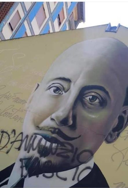 PESCARA – “L’atto vandalico registrato ai danni del Murales dedicato a d’Annunzio nell’omonima via di Pescara, nel cuore del centro storico, è semplicemente sintomo dell’ignoranza storica e culturale di chi lo ha realizzato, e anche di un profondo disagio personale che affonda le proprie radici altrove. Provvederemo a ripulire il muro imbrattato restituendo a quell’opera il suo decoro, un episodio che nulla cambia nella grandezza del personaggio e nella mediocrità dell’autore del gesto”.