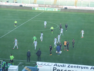 Pescara (4-3-3): Aresti, Pucino, Cosic, Zuparic, Zampano, Memushaj, Salamon (28’ st Lazzari), Selasi (1’ st Bjarnason), Politano (19’ st Pasquato), Melchiorri, Sowe A disposizione: Aldegani, Boldor, Apelt Pires, Maniero, Torreria, Vitturini Allenatore: Baroni