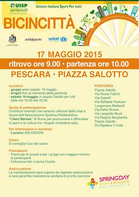 PESCARA – Si è svolta ieri mattina presso la Sede Unicef in Via Conte di Ruvo la conferenza stampa di presentazione delle manifestazioni Spring Day e Bici in città che si svolgeranno il 16 e il 17 maggio nel centro cittadino.