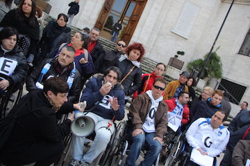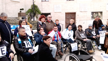PESCARA – Ieri mattina davanti il piazzale del Comune di Pescara, l’Associazione Carrozzine Determinate, è scesa in piazza insieme al Presidente Claudio Ferrante, per protestare nei confronti del Sindaco Marco Alessandrini, per aver diramato nei giorni scorsi un ordinanza in cui riduceva a 25 posti il Settore riservato ai Disabili nello Stadio Adriatico.