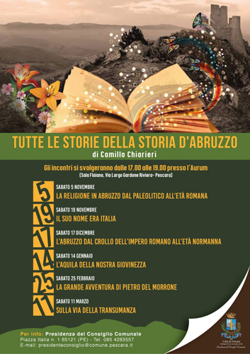 Sabato 19 novembre seguirà “Il suo nome era Italia”;terzo appuntamento il 17 dicembre dal titolo “L’Abruzzo dal crollo dell’impero romano all’eta’ normanna”.