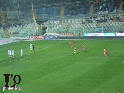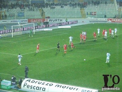 QUANTA PAURA IN CAMPO – Primo tempo condizionato dalla paura di perdere. Le due squadre faticano in fase di possesso palla, con il Pescara spesso troppo lezioso mentre il Varese è frettoloso nel cercare la profondità. Al 2′ contropiede centrale del Pescara con Poliltano che allarga sulla destra per Bovo che al momento del controllo si allunga troppo la sfera favorendo l’uscita di Bressan attendo a chiudergli lo specchio della porta deviando in corner. La replica del Varese al 15′: azione di rimessa del Varese con Pavoletti che viene trattenuto ai 25 metri in posizione centrale; sulla successiva punizione Zecchin prova la conclusione a giro ma la palla sorvola di poco l’incrocio dei pali alla destra di Belardi.