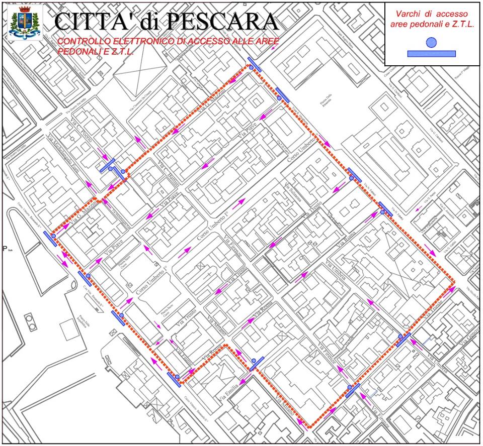 PESCARA – Dalle ore 9,00 di lunedì 1° dicembre 2014 saranno attivi i varchi elettronici nelle Zone a Traffico Limitato (ZTL) e Aree pedonali di Pescara Centro. Il sistema elettronico di rilevazione monitorerà i veicoli in entrata ed uscita dalla ZTL.