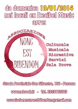 Il 19 gennaio l’inaugurazione dell’Associazione. L’esperienza nasce dal gruppo rock di Chieti “Nunc Est Bibendum”