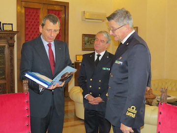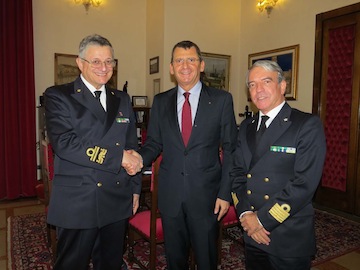 PESCARA – Visita istituzionale,ieri in Comune, dell’Ammiraglio Ispettore Stefano Vignani,Vicecomandante Generale del Comando Generale del Corpo delle Capitanerie di Porto, presente a Pescara e accompagnato dal Comandante Luciano Pozzolano.Lo ha reso noto il sindaco di Pescara Luigi Albore Mascia che ha sottolineato, durante l’incontro,l’importanza del porto , dell’attività di pesca e del traffico commerciale via mare, per l’economia del capoluogo adriatico.