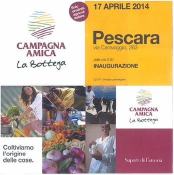 “Oggi non festeggiamo solo l’apertura di una nuova bottega, ma la conferma della bontà di un progetto capace di suscitare sempre più interesse – spiega il presidente di Coldiretti Pescara Chiara Ciavolich – se tanti imprenditori agricoli, in meno di un anno, hanno scelto di aprire un punto vendita della rete, vuol dire che il progetto economico di Coldiretti sta dando risposte nuove ed importanti nonostante il periodo di crisi che sta attraversando il Paese”. Per il direttore di Coldiretti Abruzzo, Alberto Bertinelli, la bottega a marchio Campagna Amica “è segno tangibile di una opportunità che, per chi la sa cogliere, può integrare in modo importante l’attività di chi fa impresa in agricoltura” e per il consumatore “è garanzia di qualità e possibilità di scegliere le eccellenze alimentari simbolo del made in Italy che generalmente non si trovano nei mercati tradizionali a chilometro zero (carne, vino, olio) e che provengono non solo dai confini abruzzesi ma italiani>>.