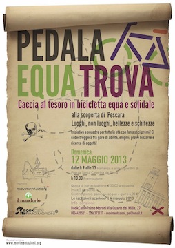 PESCARA – L’Associazione culturale Movimentazioni e il Book Cafè Primo Moroni in collaborazione con la Bottega del commercio equo e solidale Il Mandorlo organizzano “Pedala, equa, trova” la seconda edizione della caccia al tesoro in bicicletta alla scoperta di Pescara.