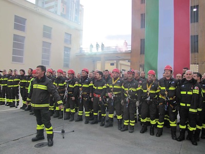 Al termine della Santa Messa, all’interno della chiesa, si è svolta la lettura dei saluti dei Comandanti generali di Vigili del Fuoco e Capitaneria di Porto. Quindi la cerimonia si è spostata all’interno del Comando dei Vigili del Fuoco, in viale Pindaro, dove il Prefetto D’Antuono ha passato in rassegna il personale e ha depositato una corona in onore ai Caduti ai piedi del monumento situato all’interno della Caserma stessa.