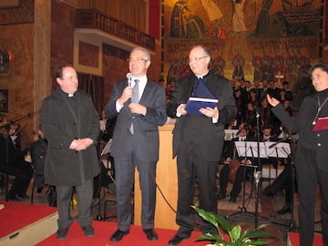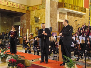 PESCARA – Si è tenuto domenica, per il secondo anno consecutivo, presso la parrocchia dello Spirito Santo a Pescara , il Concerto di Natale di Monsignor Frisina con l’Orchestra Fidelis et Amati e con il Coro della Diocesi di Roma. Erano presenti il sindaco di Pescara Luigi Albore Mascia , l’arcivescovo di Pescara Monsignor Tommaso Valentinetti, con l’arcivescovo di Teramo-Atri, il Prefetto di Pescara Vincenzo D’Antuono, l’assessore alle Politiche sociali Guido Cerolini, il vicesindaco Berardino Fiorilli, il Presidente della Commissione Politiche sociali Salvatore Di Pino e il Presidente della Banca di Credito Cooperativo di Cappelle sul Tavo Michele Borgia, tesoriere del progetto Pro-Vita.