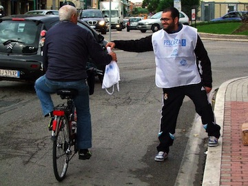 Da qui l’idea di contare i ciclisti che utilizzano il mezzo più ecologico e sano che c’è, la bicicletta, non per andare a spasso, ma per raggiungere il posto di lavoro o la scuola. Contarli e “premiarli” con la consegna di uno zainetto targato FIAB – Pescarabici all’interno del quale hanno trovato materiale informativo, un cappellino e un tagliando per partecipare all’estrazione di due biciclette.