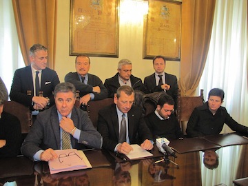 PESCARA – Si è svolta ieri a Pescara una Conferenza stampa convocata per chiarire i motivi della mancata ratifica in Consiglio comunale della delibera dell’accordo di programma sull’ex Cofa. Presenti il sindaco di Pescara Luigi Albore Mascia e la maggioranza di Governo di centro-destra. Il primo cittadino invierà una relazione al Presidente della Regione Abruzzo Chiodi, al Presidente della Provincia di Pescara Testa e al Presidente della Camera di Commercio per renderli formalmente edotti su quanto accaduto in Consiglio comunale con la speranza di riuscire ad avere a brevissimo un incontro per valutare e verificare cosa fare per non gettare la spugna, perché su quella fetta di città si gioca lo sviluppo di Pescara. E’ stata criticata la politica del ‘tanto peggio tanto meglio’ così come l’ ostruzionismo usato strumentalmente dall’opposizione .