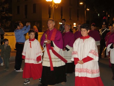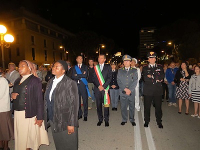 PESCARA – Si è svolta ieri a Pescara la tradizionale processione della festa di San Cetteo. Dopo la celebrazione della Santa Messa, officiata a partire dalle 18, dall’arcivescovo di Pescara-Penne, Monsignor Tommaso Valentinetti, con l’abate generale Don Francesco Santuccione e Don Giuseppe Natoli, alle 19.15 è partito il corteo religioso con l’abate generale Don Francesco Santuccione, seguito dalle autorità cittadine, tra cui, oltre al sindaco Albore Mascia, anche il Presidente della Provincia Guerino Testa, il Prefetto di Pescara Vincenzo D’Antuono il capogruppo del Pdl Armando Foschi e Roberto Petri.