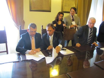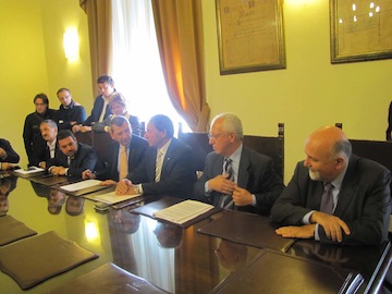 PESCARA – Il sindaco di Pescara Luigi Albore Mascia, nel corso della conferenza stampa convocata ieri per la firma della Convenzione necessaria per la progettazione e realizzazione dell’intervento di messa in sicurezza degli argini golenali del fiume Pescara, ha annunciato che occorreranno ventitre mesi per realizzare tale intervento,con uno stanziamento straordinario di 3milioni 600mila euro messo a disposizione dalla Regione Abruzzo per la realizzazione di un’opera fondamentale per la costruzione del Ponte Nuovo presso l’ex Camuzzi . Sono dunque partite ieri, con la firma della Convenzione interistituzionale, le procedure ufficiali per l’apertura del cantiere. Entro aprile si dovrebbero definire gli espropri, quindi entro fine 2012 si prevede l’inizio materiale dei lavori. Il Comune sarà stazione appaltante ed Ente attuatore.Alla conferenza stampa erano presenti, tra gli altri, l’assessore regionale Angelo Di Paolo, il Commissario straordinario Emilio Santori, il consigliere regionale Lorenzo Sospiri, l’ingegner Massimo Caputi, gli assessori comunali Isabella Del Trecco, Marcello Antonelli, Elena Seller e Nicola Ricotta, i consiglieri comunali Gianni Santilli, Vincenzo D’Incecco e Massimo Pastore e il Presidente della Provincia di Pescara Guerino Testa.
