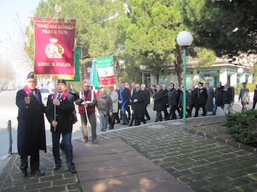 PESCARA – Si è svolta ieri mattina la cerimonia di commemorazione del Giorno del Ricordo a cui hanno preso parte tra gli altri il sindaco di Pescara Luigi Albore Masca, il Presidente della Provincia di Pescara Guerino Testa,il prefetto Vincenzo D’Antuono, rappresentanti di tutte le Forze dell’Ordine, gli assessori Nicola Ricotta e Marcello Antonelli, il consigliere regionale e capogruppo comunale Pdl Lorenzo Sospiri, il vicecapogruppo Armando Foschi, il consigliere comunale Vincenzo D’Incecco, il consigliere provinciale Camillo Savini, il Presidente della Camera di Commercio Daniele Becci e il consigliere della Circoscrizione Castellamare Benedetto Gasbarro.