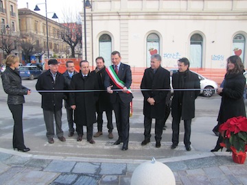 PESCARA – E’ stata inaugurata ieri mattina la nuova piazza Vittoria Colonna nel cuore di Porta Nuova, realizzata nell’area antistante la vecchia stazione ferroviaria, un nuovo punto di incontro, di aggregazione, di socializzazione e soprattutto di rilancio dell’intero quartiere di Porta Nuova.Il sindaco di Pescara Luigi Albore Mascia con il Presidente Filippo De Cecco ha tagliato il nastro per inaugurare l’apertura al pubblico di piazza Colonna, dopo quattro mesi di lavori. Presenti, tra gli altri, il vicesindaco Berardino Fiorilli, gli assessori ai Lavori pubblici Alfredo D’Ercole, allo Sviluppo del Territorio Marcello Antonelli alle Attività Produttive Stefano Cardelli, il vicepresidente del Consiglio Gianni Santilli, il consigliere regionale Lorenzo Sospiri, il Presidente della Circoscrizione Porta Nuova Piernicola Teodoro e l’ex assessore all’Urbanistica Lucio Candeloro, promotore dell’iniziativa imprenditoriale nel 1998, oltre a Emilio Totaro, dirigente dell’impresa De Cecco.