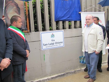 PESCARA – E’ stata inaugurata ieri mattina via San Luigi Orione, corrispondente al primo tratto della strada-pendolo, ossia l’area di circolazione compresa tra via Aterno, all’altezza del numero civico 219, e via Sacco, attualmente tratto di via Lago di Capestrano, all’altezza del numero civico 82/2.Alla cerimonia erano presenti l’assessore comunale Vincenzo Serraiocco, che ha aperto la cerimonia, l’arcivescovo di Pescara Monsignor Tommaso Valentinetti, il Presidente della Provincia di Pescara Guerino Testa, il consigliere comunale Massimiliano Pignoli, promotore dell’iniziativa, e il Direttore Provinciale dell’Opera Don Orione, Don Domenico Crucitti, oltre a decine di cittadini e utenti dello storico istituto situato in via Aterno a Pescara.