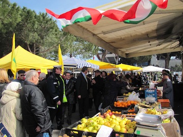 Il sindaco Albore Mascia ha concluso la cerimonia con un giro tra le bancarelle per salutare gli operatori del mercato, visitando anche lo stand della Coldiretti, presente con le bandiere gialle di ‘Campagna Amica’ e con i tre asinelli portati nel mercato, “per il primo di una serie di appuntamenti che prevedono anche la dimostrazione della filatura della mozzarella”, come ha ricordato l’assessore Cardelli.