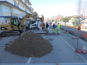 eonibus Costruzioni Snc che ha offerto un ribasso del 33 per cento, aggiudicandosi la gara per 159mila 766,89 euro. Il cantiere è stato aperto pochi giorni fa e, completata la fase della demolizione del manto stradale, iniziate le opere sulla rete fognaria, con l’Aca ci siamo resi conto della necessità di intervenire ulteriormente sulla rete di raccolta delle acque bianche per agevolare il deflusso nei giorni di pioggia, allacciando il sistema alla condotta del collettore rivierasco che corre sul lato mare della carreggiata stradale. Per realizzare l’allaccio è necessario effettuare uno scavo perpendicolare al lungomare che attraverserà l’intera carreggiata e dunque è stato necessario chiudere al traffico lo stesso lungomare Matteotti per consentire lo svolgimento delle opere. Secondo le nostre previsioni, il cantiere richiederà almeno due giorni di lavori: la chiusura al traffico è scattata stamane, poco dopo le 9, alla conclusione del deflusso del traffico veicolare legato all’apertura delle scuole, degli uffici e dei negozi. Il cantiere ha interessato nello specifico il tratto di lungomare compreso tra via Leopardi e via Manzoni, ma per la realizzazione delle opere è stato necessario chiudere al traffico per intero il primo tratto sud del lungomare Matteotti, compreso tra via Paolucci e via Manzoni. Nelle prime ore del mattino non abbiamo registrato disagi, tranne qualche automobilista, fortunatamente pochi, disinformato che, nonostante le transenne e la cartellonistica che indicavano la chiusura, comunque hanno imboccato il lungomare Matteotti dalla Madonnina, salvo poi dover fare marcia indietro dinanzi al blocco in corrispondenza di via Leopardi. Purtroppo i disagi si sono fatti più evidenti, invece, nel pomeriggio, in coincidenza con l’orario di uscita da uffici e scuole e di riapertura dei negozi, quando il traffico più intenso ha determinato code e file, specie sul lungofiume nord, a causa dell’imbuto verificatosi a ridosso delle due rotatorie di via Paolucci. La situazione è tornata a farsi calma intorno alle 17. Per limitare al minimo i disagi – ha proseguito l’assessore Fiorilli – abbiamo anche predisposto i percorsi alternativi per il traffico veicolare, ossia: tutte le auto in marcia sul lungomare Matteotti e provenienti da nord, con direzione di marcia nord-sud, hanno dovuto svoltare su via Foscolo, proseguire in via Gobetti e uscire in via Paolucci; tutte le auto provenienti da sud-ovest e dirette a nord devono invece percorrere via Paolucci, svoltare in via Puccini, proseguire in via Manzoni e tornare sul lungomare Matteotti, un’organizzazione viaria che non determinerà alcuna interferenza tra le due direzioni viarie. E qualche rallentamento è stato registrato in via Foscolo. E’ rimasto aperto solo al traffico locale Borgo Marino nord, ossia da via Puccini sarà possibile accedere anche domani in via Bruno Buozzi, ma solo per poi uscire sul lungomare Matteotti e svoltare verso sud, per tornare in via Paolucci, e questo per non creare ostacoli o intralci al traffico soprattutto residenziale. Ovviamente cercheremo di accelerare al massimo le opere per riaprire al traffico la riviera già entro il primo pomeriggio di domani, ma intanto ai cittadini chiediamo collaborazione e soprattutto di prestare massima attenzione alla viabilità”.