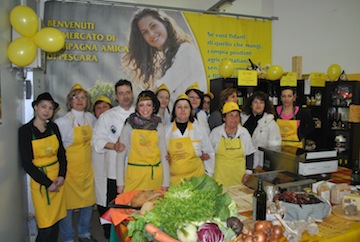 PESCARA – Gran successo per il cooking show dello chef Silvano Pinti nel mercato di Campagna Amica di Pescara. Ieri, in occasione della festa della donna, il cuoco di Francavilla in collaborazione con Campagna Amica e Coldiretti Donne Impresa Abruzzo ha animato la visita delle clienti di via Paolucci con una performance culinaria apprezzata e applaudita. Utilizzando i prodotti freschi dei produttori di Coldiretti, il cuoco ha preparato – ed offerto – i piatti semplici della cucina tradizionale, rivisitandoli estemporaneamente. Così, non solo, pane con cipollina fresca e olio dop, ma anche insalata di indivia, mele, miele e formaggio misto grattugiato, innaffiata da un trebbiano doc; insalata di farro con verdure fresche, sfoglie di formaggi a pasta filata abruzzesi, pasta alla “trappitara” con aglio rosso di sulmona, peperone dolce secco (bastardone) e olive nere di varietà dritta in salamoia.