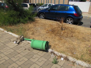 di nuovo il patrimonio comunale è finito inspiegabilmente nel mirino dei vandali , esattamente com’è accaduto a cavallo di ferragosto sulla riviera sud. Il nuovo episodio riguarda, anche questa volta, una strada centrale della città, l’asse di via Paolucci, il marciapiede che costeggia la parte posteriore del Comune e prosegue verso il mare. Lungo l’asse pedonale, riqualificato in betonella, sono posizionati dei cestini in plastica verde portarifiuti, e due di essi sono stati divelti da terra, spezzando il paletto di sostegno e gettandoli a terra, poco prima della rotatoria. Ma non basta: nell’atto vandalico, hanno distrutto anche la pavimentazione stradale, provocando il rialzo della betonella, completamente distrutta per un ampio tratto. E’ evidente che si tratta di un episodio fotocopia del precedente, ed è evidente supporre, in ambedue i casi, l’utilizzo di attrezzi per la demolizione dei cestini portarifiuti altrimenti ancorati a terra con il cemento tutt’attorno ai paletti di sostegno. Ovviamente la Attiva già stamane, verificato il danno, ha provveduto alla rimozione dei cestini e dei paletti, che ora andranno reinstallati, ma solo dopo che anche la pavimentazione sarà stata ripristinata e sistemata, alzando ovviamente il livello d’attenzione sul territorio contro simili gesti che non hanno giustificazioni.