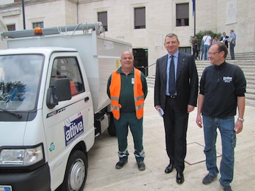 PESCARA – Il sindaco di Pescara Luigi Albore Mascia e l’assessore all’Ambiente Isabella Del Trecco con il Presidente della Attiva Guglielmo Lancasteri hanno presentato, in conferenza stampa,ieri mattina i nuovi cinque mezzi appena acquistati dalla Attiva Spa al fine di rendere sempre più efficace ed efficiente l’azione di bonifica e di manutenzione ordinaria del territorio: è così partito ufficialmente il graduale rinnovo del parco auto della Attiva, la società che gestisce il settore rifiuti per il Comune di Pescara .