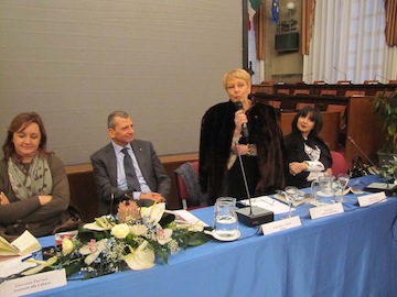 PESCARA – Ieri pomeriggio è stato presentato a Pescara il libro della scrittrice e giornalista Paola Sorge dal titolo ‘Eleganza e Voluttà in Gabriele d’Annunzio’,una raccolta di articoli lunga 23 anni, che ci rivelano aspetti ancora inediti del Vate.Al primo evento dannunziano, nell’anno del 150° della nascita ,hanno preso parte l’autrice,il sindaco di Pescara Luigi Albore Mascia, il professor Andrea Lombardinilo, l’assessore alla Cultura Giovanna Porcaro e l’attrice Daniela Musini, che ha letto alcune lettere di d’Annunzio.Il sindaco ha detto che nelle pagine dell’ultima fatica letteraria di Paola Sorge viene svelato il D’Annunzio privato, quello più intimo, l’artista che scrive alla sua domestica o alla cuoca creando piccole opere d’arte.