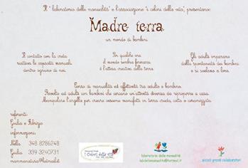 PESCARA – Giovina Zulli, Presidente dell’Associazione Culturale “I Colori della Vita”, in Via Largo Madonna n. 62 Pescara Colli,rende noto che mercoledì 22 gennaio 2014,alle ore 16.00, si riattiva la ludoteca con il Laboratorio “Madre Terra” (laboratorio con l’argilla).